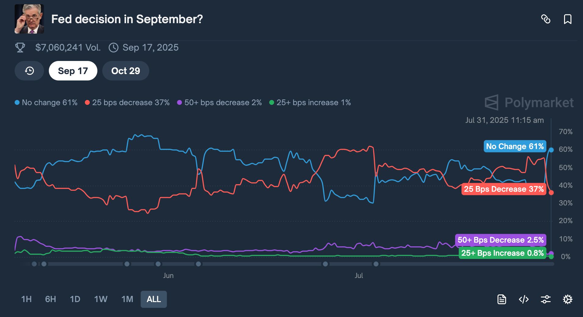 3) Get ready for September fireworks: My personal read is that if the data continues to come in muddy around the labor vs. inflation trade-off, Powell will be inclined to continue holding in September. IF that happens, I imagine Trump is highly likely to resort to even more heavy-handed tactics. The POTUS is not someone who likes to be defied for long and by September, his patience will have worn quite thin.